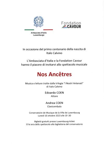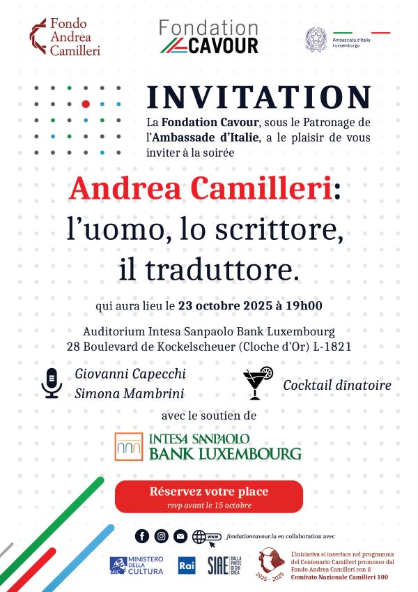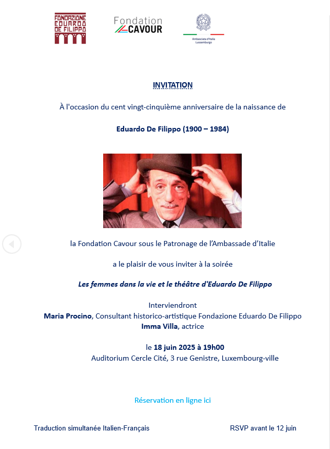 La Fondation Cavour, sous le Patronage de l’Ambassade d’Italie, a le plaisir de vous inviter à la soirée