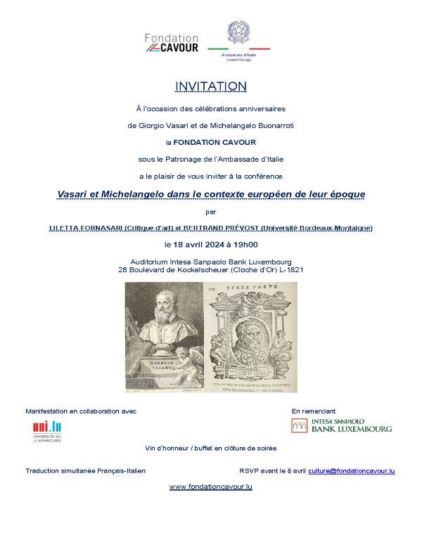 À l’occasion des célébrations anniversaires de Giorgio Vasari et de Michelangelo Buonarroti